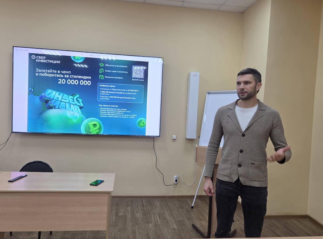 14 ноября для студентов выступил представитель ПАО «Сбербанк», подробно рассказав о чемпионате SBER Инвестиции