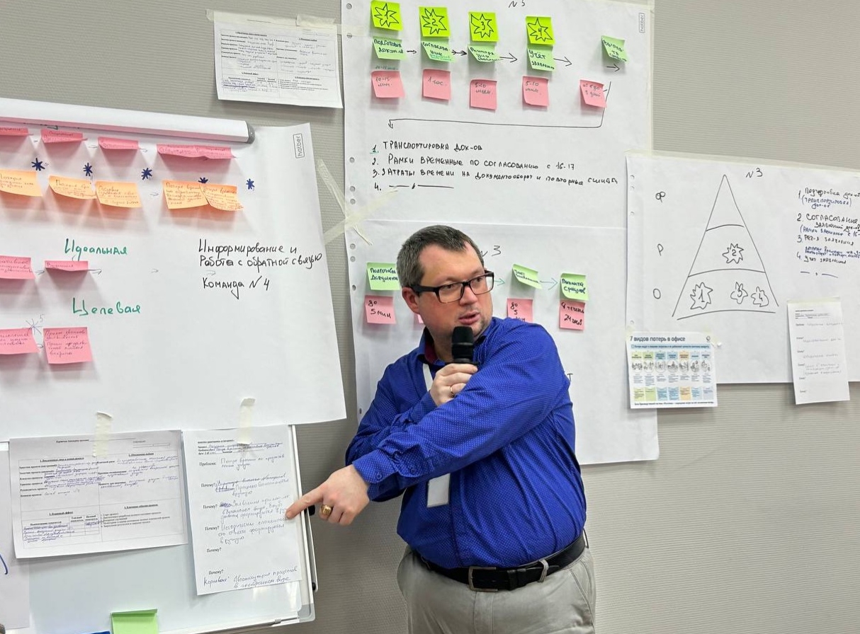 - Лекция и Практическое занятие «Бережливое управление и производство труда»: Участники глубоко погрузились в основы повышения эффективности и оптимизации процессов под руководством Юрия Александровича Ржаницын, заместителя директора Кировского МФЦ.