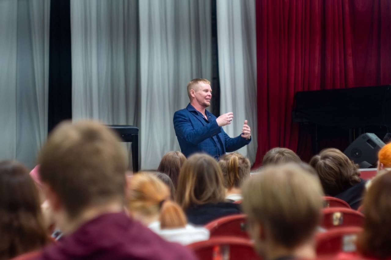 Антон Викторович рассказал студентам и сотрудникам колледжа об участии в специальной военной операции (СВО) и о своём жизненном пути. Антон Викторович окончил Крымский университет культуры, искусств и туризма по направлению "Режиссура театрализованных представлений и праздников"