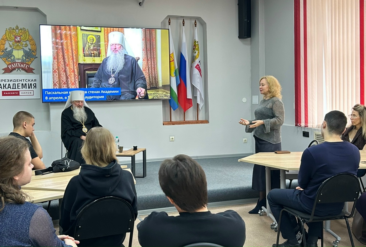 8 апреля в Президентской академии / Киров прошла встреча с Митрополитом Вятским и Слободским Марком. Пообщаться с почетным гостем собрались студенты, преподаватели и сотрудники вуза.
