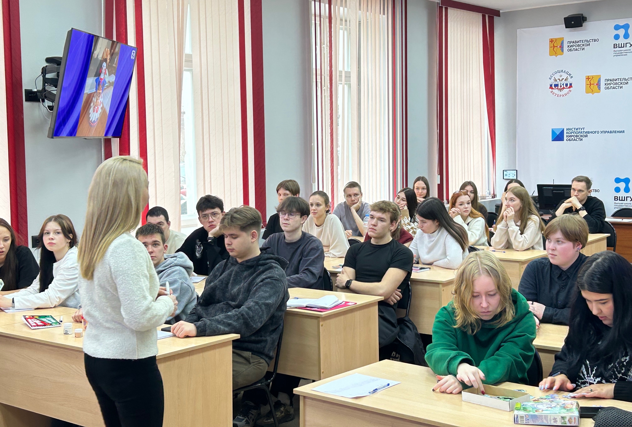 Под руководством Лилианы Романовны Амичбы и студентки группы Э-ДО-24 Валерии Шишкиной, студенты Президентской академии узнали о процессе создания вятской игрушки из самозастывающей глины.