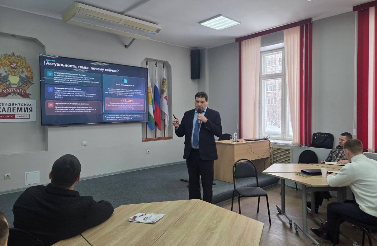 - Цифровая трансформация: О том, что такое «Умный регион» и как работают «Большие данные в региональном управлении», рассказал Станислав Александрович Туманов, начальник отдела обеспечения деятельности и развития ситуационного центра Губернатора Кировской области министерства информационных технологий и связи Кировской области.