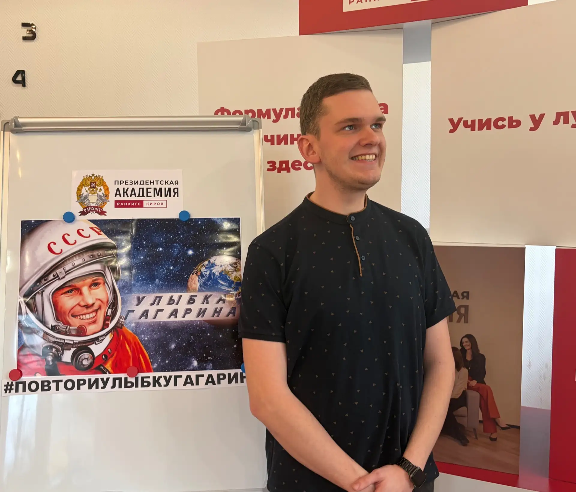 В Президентской академии в Кирове стартовала Всероссийская акция «Повтори улыбку Гагарина». Наши студенты, преподаватели и сотрудники уже вовсю делают снимки — листай карусель, заряжайся позитивом и присоединяйся!