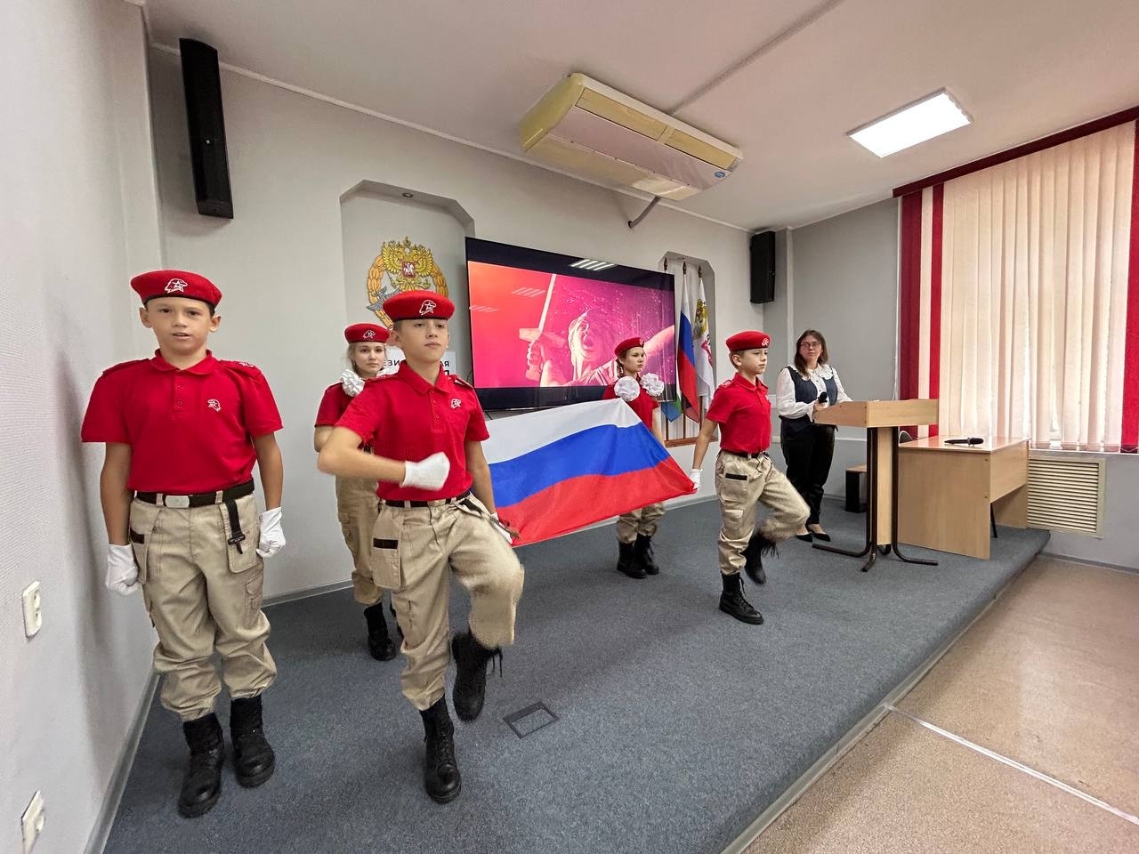 Для выноса Государственного флага Российской Федерации и флага Кировской области была приглашена знаменная группа Юнармейского отряда средней общеобразовательной школы №59 города Кирова.