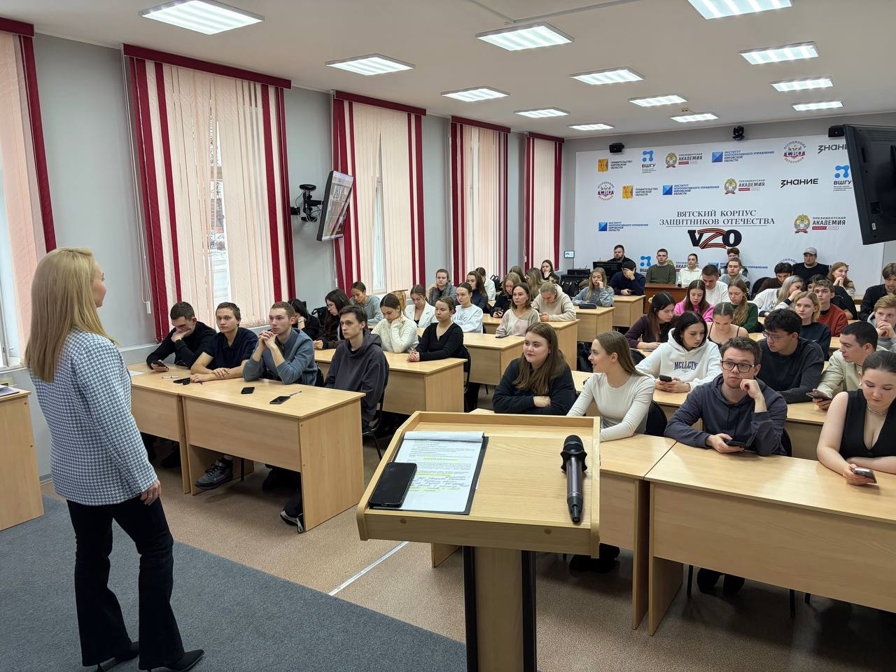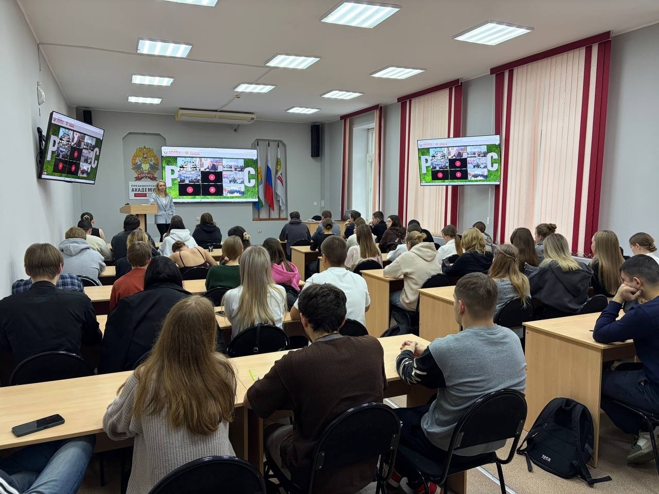 18 ноября в Кировском филиале Президентской академии прошёл IV сезон Всероссийского гражданско‑патриотического диктанта «Моя любовь, душа моя — Россия!» под руководством Лилианы Романовны Амичбы, заместителя директора по воспитательной работе и молодёжной политике.